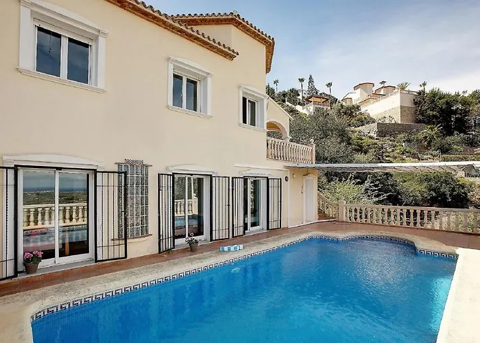The 3-bedroom Amanda: 4 Bedroom Villa With Stunning Views features a terrace with views of the sea as well as a swimming pool. Offering Wi-Fi, this property is located 4.5 km from Via Verde de Denia.